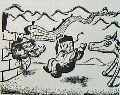 The Great Wall is mostly painted on the backdrop. Only the left